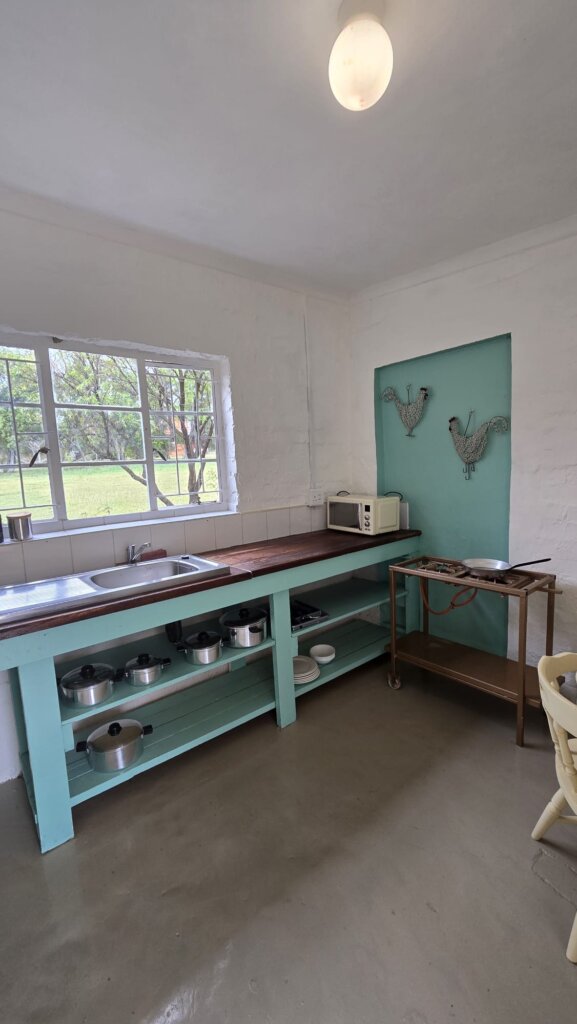 Welcome to a retreat designed for both comfort and connection. To begin with you will find a self‑contained area which features a traditional braai and a firepit — the perfect setting for relaxed evenings under the stars. In addition, a fully equipped kitchen awaits you, complete with a fridge/freezer, gas stove, microwave, and has all the essentials. Making it easy for you to prepare meals with ease and style.