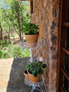 The Sun and Moon House, a pretty 2 story family cottage in its own space across the gardens. So named as it is possible to see the sun set, and the moon rise through opposite windows. It has a double bedroom downstairs and a twin/ king bedroom an ensuite shower room, this is a great family house sleeping up to 4 people. It boasts a large upstairs verandah looking out across the views of the rocks and the wild areas, an incredible spot for sundowners, watching the sunset reflecting off the red rocks is quite a sight to see.
